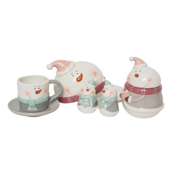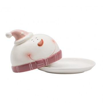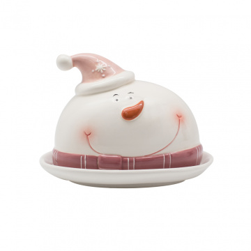 Описание НГ Масленка Снеговик бело розовый 13.6х11.1х10см