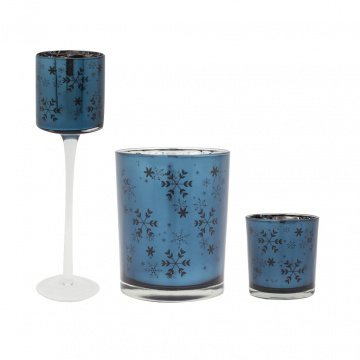 Описание НГ Подсвечни стекло бокал синий Снежинки 7 х 25 см