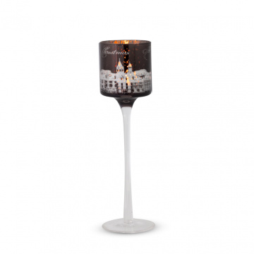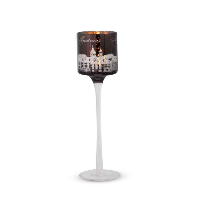 Описание НГ Подсвечник стекло черный / серебро Город 7 х 25см