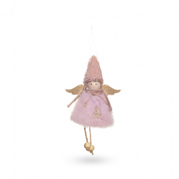 Описание НГ Подвеска ангел мех с елочкой розовый 17см