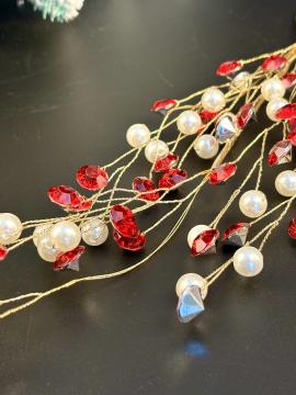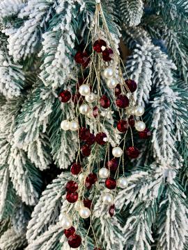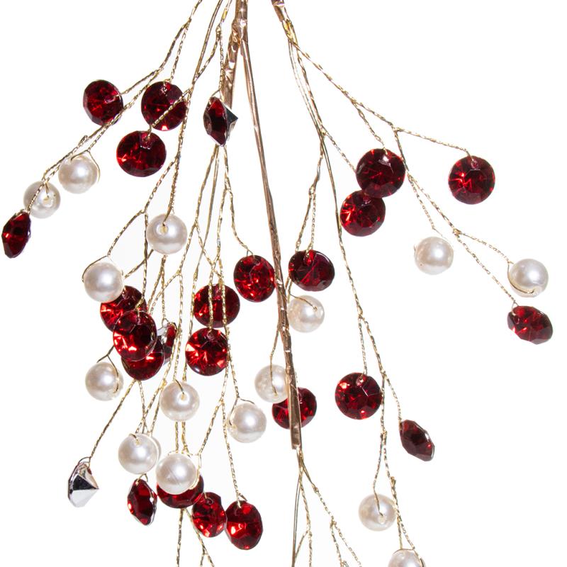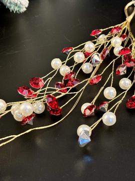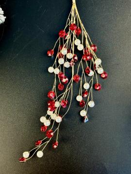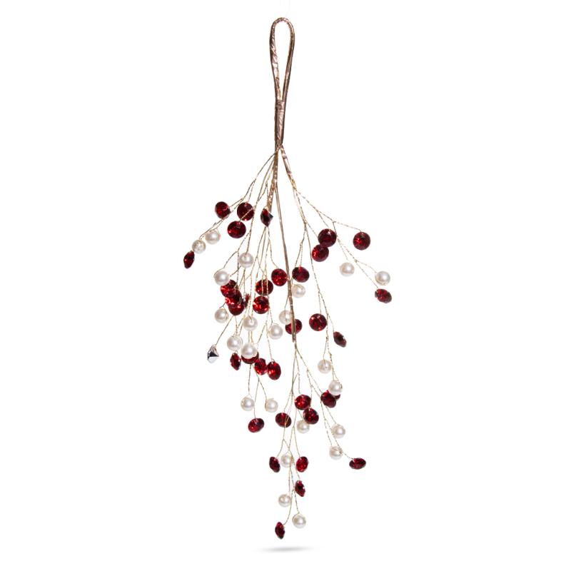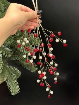 Описание Подвеска на елку Веточка с красно - белыми бусинами 35см