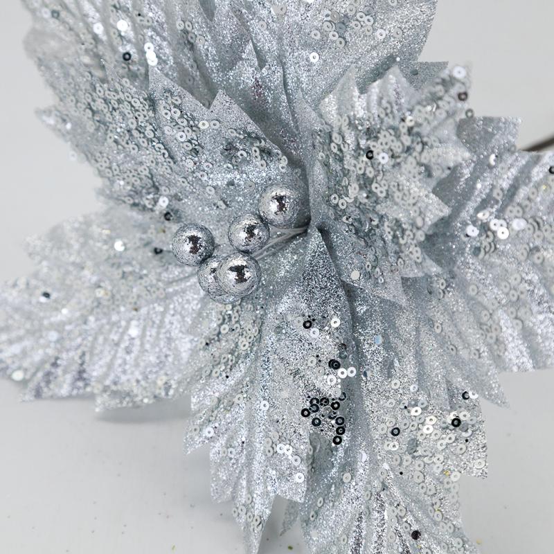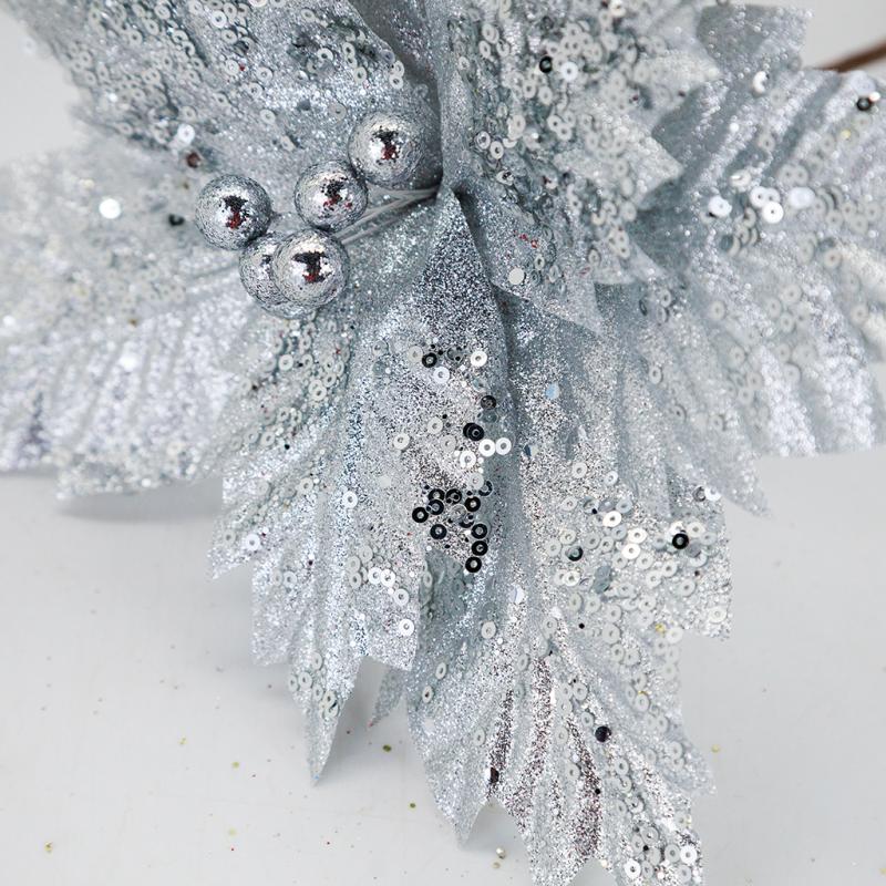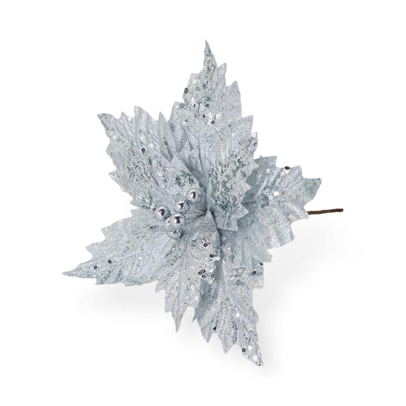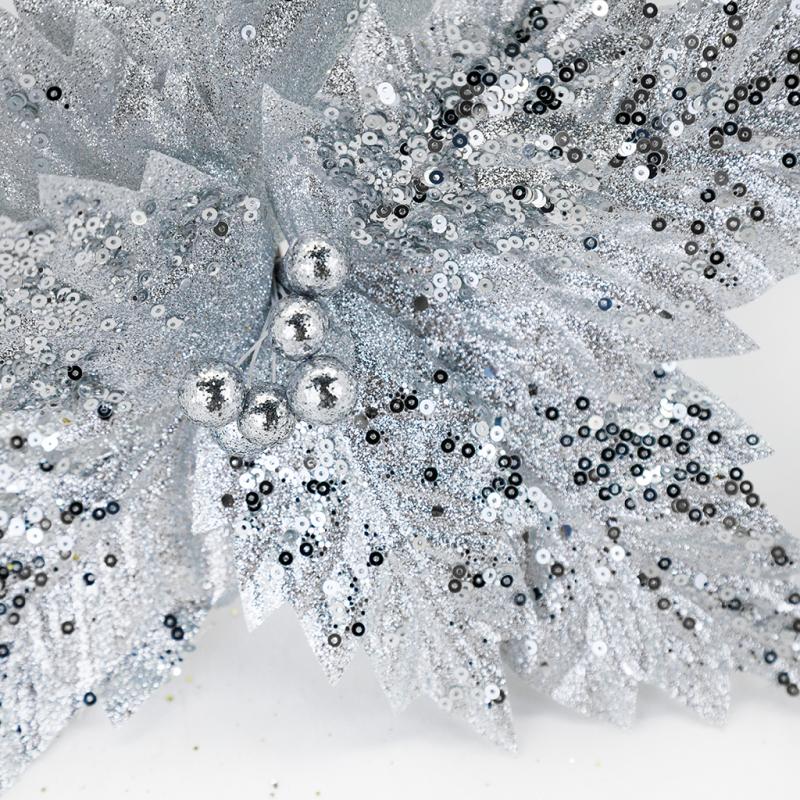 Описание НГ Пуансетия серебро 30 см