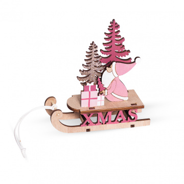 Описание НГ Санки с Сантой дерево 13.5х14.5х5 см