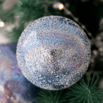 Описание НГ Шар стекло голубые жемчужины 8х8см