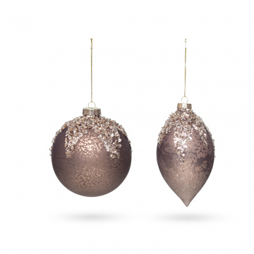 Описание НГ Шар стекло Капля с бисером коричневый 8х12см