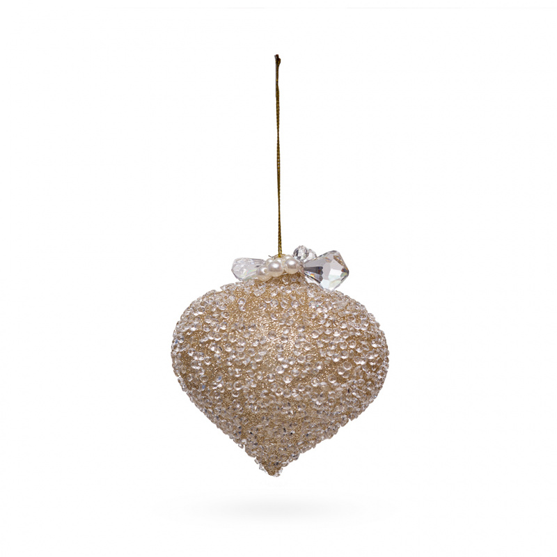 Елочные игрушки обретают неординарный внешний вид. Выделяются текстура и обилие декоративных деталей. Елочное украшение в форме луковицы густо покрыто прозрачным бисером. Изделие дополнено декоративными жемчужинами и бусинами. На елке игрушка цвета шампань переливается мягким золотом. Выгодно выделяется в темном и светлом интерьере благодаря блестящим деталям. Вспомогательный декор для тематических композиций в подвесном состоянии. Коллекция стеклянных шаров с бисером выполнена в трендовых оттенках: серый, розовый, белый. Новогодние игрушки разных форм и цветов дают возможность элегантно украсить елку и дом по своему вкусу. Стеклянные шары обладают презентабельным внешним видом. Новогодний вариант подарка друзьям и коллегам. Добавьте ярких красок и блеска для наряда елки. Повесьте на ветви красочные шары из бисера. Вы готовы к встрече Нового года.