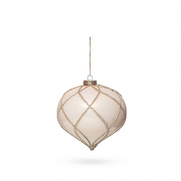 Описание НГ Шар стекло Луковичка плетение шампань с золотом 12 см