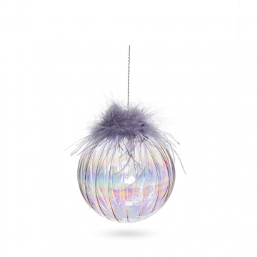 Описание НГ Шар стекло с серыми перьями 10х10см