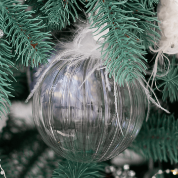 Душа новогодних праздников – нарядная елка. Стеклянный шар с перышками буквально разрядит красавицу в пух. Цветные пушинки на стекле – один из ярких трендов новогоднего декора. Елочный шар на ветке создает эффект легкой невесомости. Серые стекло и пух смотрятся сдержанно и благородно на фоне зеленой елки. Новогодний шар украшает собой гирлянды, праздничные витрины и тематические фото зоны. Стеклянные шары с нежной огранкой выполнены в белом, сером и розовых цветах. Для объема елки используйте в паре шары 8см и 10см. Добавьте образу елки нежности и прозрачной дымки. Украшайте новогодними шарами с цветными перышками. Сколько приятных переживаний вам предстоит испытать.