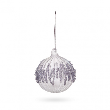 Описание НГ Шар стекло серый глиттер + прозрачный бисер 8см
