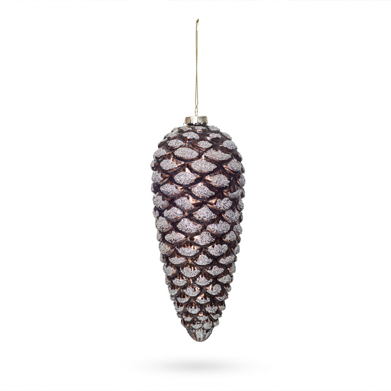 Естественно и приятно наряжать елку новогодними шишками. Стеклянная игрушка творит образ зимней сказки с чудесами. Стеклянное украшение добавляет объем нижним ветвям ели. Рельефы с золотым глиттером преображают атмосферу в праздник. Новогодняя шишка броско смотрится на гирлянде, каминной полке или в стеклянной вазе. Коллекция новогодних шишек из стекла выдержана в классическом стиле. Интересная вариация цветов состоит из золотого, бронзового, темно-бронзового и серебряного оттенков. В линейке размеры шаров: 11см, 16см, 20см. Придерживайтесь традиции Нового года. Добавьте елочным украшениям несколько сосновых шишек. Классический подарок для дома к зимним праздникам.