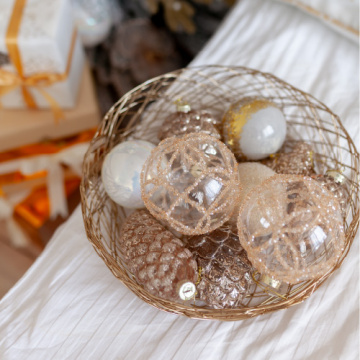 Естественно и приятно наряжать елку новогодними шишками. Стеклянная игрушка творит образ зимней сказки с чудесами. Стеклянное украшение добавляет объем нижним ветвям ели. Рельефы с золотым глиттером преображают атмосферу в праздник. Новогодняя шишка броско смотрится на гирлянде, каминной полке или в стеклянной вазе. Коллекция новогодних шишек из стекла выдержана в классическом стиле. Интересная вариация цветов состоит из золотого, бронзового, темно-бронзового и серебряного оттенков. В линейке размеры шаров: 11см, 16см, 20см. Придерживайтесь традиции Нового года. Добавьте елочным украшениям несколько сосновых шишек. Классический подарок для дома к зимним праздникам.