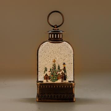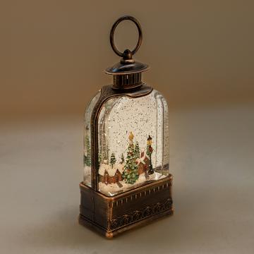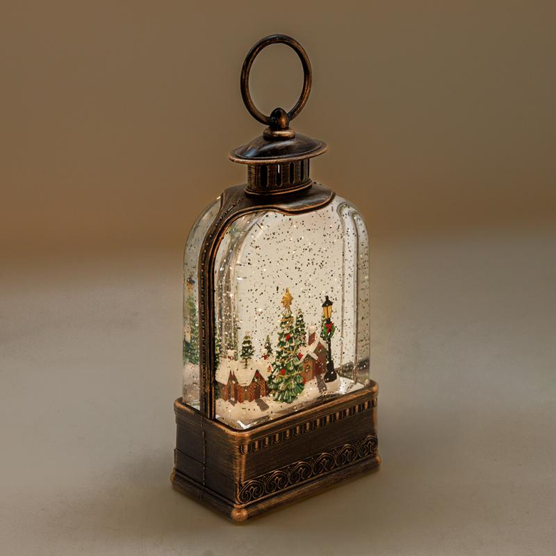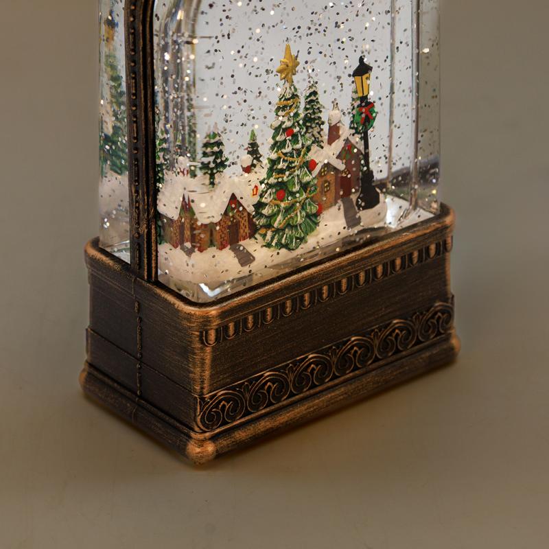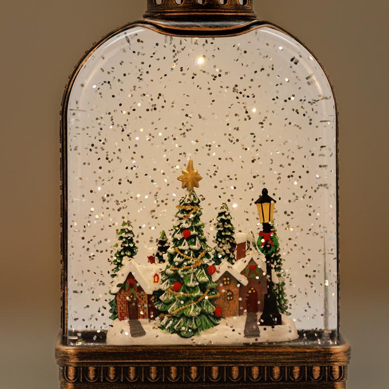 Снежный шар с автоподдувом, подсветкой и музыкой Фонарь с елкой 34 см