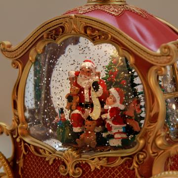Пусть изящная «Карета с Сантой» со снежным шаром внутри наполнит ваш дом атмосферой праздника и станет эксклюзивным подарком, который будет радовать вас и близких всю новогоднюю зиму.