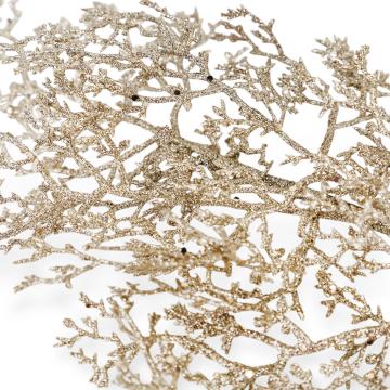 Закажите глиттерную золотую ветку и соберите цельный зимний образ к Новому году и Рождеству: одна золотая веточка подчеркнёт изящество декора, несколько — помогут создать эффектную праздничную сцену на ёлке или на праздничном столе.
