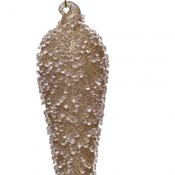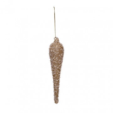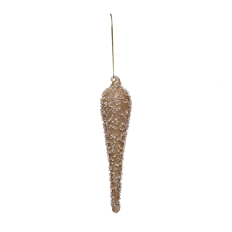 Новогодние сосульки в доме – классика проверенная временем. Не стоит забывать о традиционных игрушках к Новому году. Елочное украшение в форме сосульки густо покрыто золотым глитером и прозрачным бисером. На елке игрушка цвета шампань выглядит объемно и богато. Выделяется переливами мягкого золота. Выгодно смотрится в темном и светлом интерьере благодаря блестящим деталям. Вспомогательный декор для тематических композиций в подвесном состоянии. Коллекция стеклянных шаров с бисером выполнена в трендовых оттенках: серый, розовый, белый. Новогодние игрушки разных форм и цветов дают возможность элегантно украсить елку и дом по своему вкусу. Стеклянные сосульки обладают презентабельным внешним видом. Новогодний вариант подарка друзьям и коллегам. Окунитесь в сказку Нового года с добрыми чувствами. Прикоснитесь к чуду нарядной елки. Украшайте веточки золотыми сосульками.
