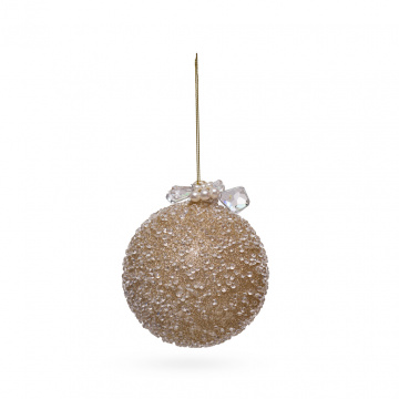 Новогодняя елка наполняет дом приливами радости. Стоит подобрать игрушки с эффектом волшебства. Новогодний шар цвета шампань густо усыпан прозрачным бисером. Украшение дополнено декоративными жемчужинами и бусинами. На елке шар переливается цветом мягкого золота. Выгодно выделяется в темном и светлом интерьере благодаря блестящим деталям. Вспомогательный декор для тематических композиций в подвесном состоянии. Коллекция стеклянных шаров с бисером выполнена в трендовых оттенках: серый, розовый, белый. Новогодние игрушки разных форм и цветов дают возможность элегантно украсить елку и дом по своему вкусу. Стеклянные шары обладают презентабельным внешним видом. Новогодний вариант подарка друзьям и коллегам. Обновите декорацию новогодней елки. Украшайте гостью стеклянными шарами с бисером. Неординарный декор придется вам по душе.