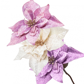 Расслабляет красотой природы нежное растение. Цветок пуансеттия действует на атмосферу волшебным образом. Выделяются интонацией праздника все детали цветка. Лепестки с бархатным напылением отличаются мягкостью текстуры. Пуансеттия – культовый цветок для украшения зимних праздников. Великолепный декор для рождественских венков, витрин, и стильных икебан. Многослойные пуансеттии выглядят объемно на фоне стеклянной вазы или зеленой гирлянды. Цветы пуансеттии можно использовать и для украшения Новогодней елки. Аккуратный внешний вид цветка производит впечатление респектабельности. Комплект цветков пуансеттии состоит из трех расцветок: слоновая кость, сиреневый и коралловый. Декоративный поливинилхлорид – признанный материал премиум -класса. Обладает безопасными свойствами для многократного использования. Действуйте в интересах уютного интерьера. Добавляйте яркие акценты из цветов пуансеттии. Опирайтесь на проверенные элементы декора высокого качества.