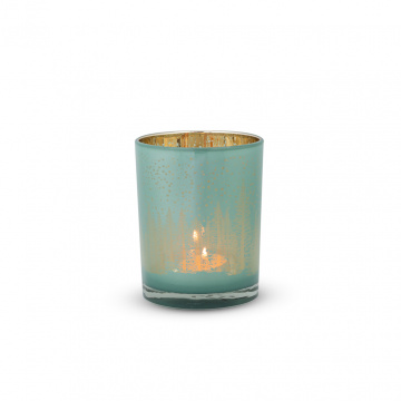 Описание НР Свічник скло блакитний/золото ялинки 10*12.5см