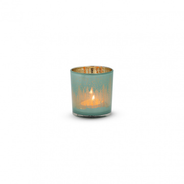 Описание НР Свічник скло блакитний/золото ялинки 7.3*8см