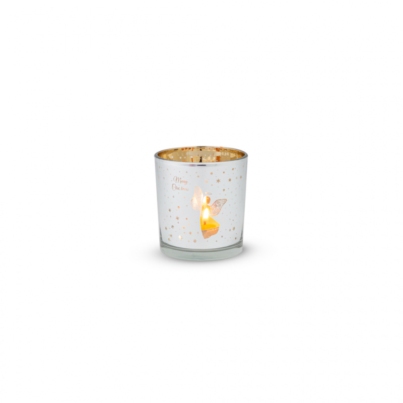Описание НР Свічник скло срібло / золото Янгол 7.3 * 8см