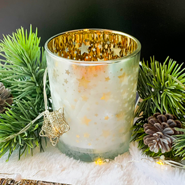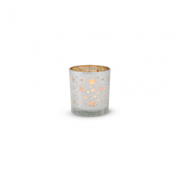 Описание НР Свічник скло срібло / золото зірки 7.3 * 8см