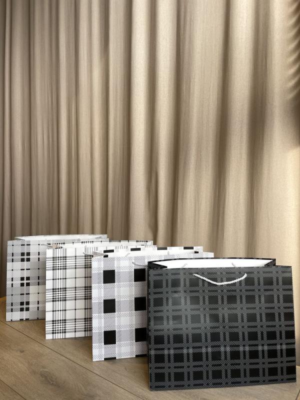 Описание Пакет подарочный Клетка черно-белая XL 33х15х42cm