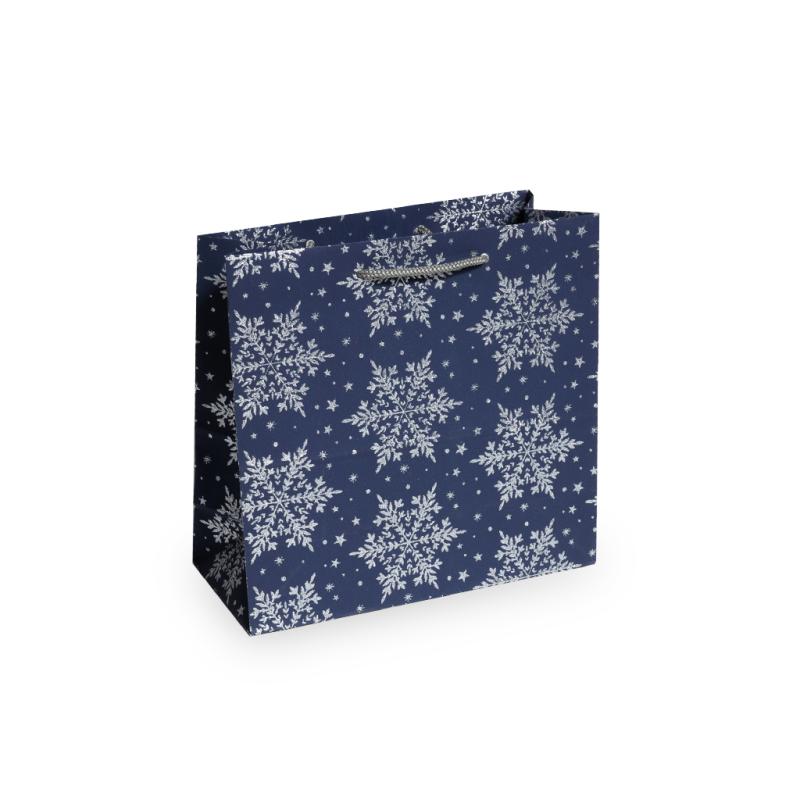 Описание Пакет подарочный Снежинка синий M 24х23х10см