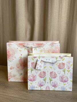 Описание Пакет подарочный Цветы весенние L 25х11х33cm