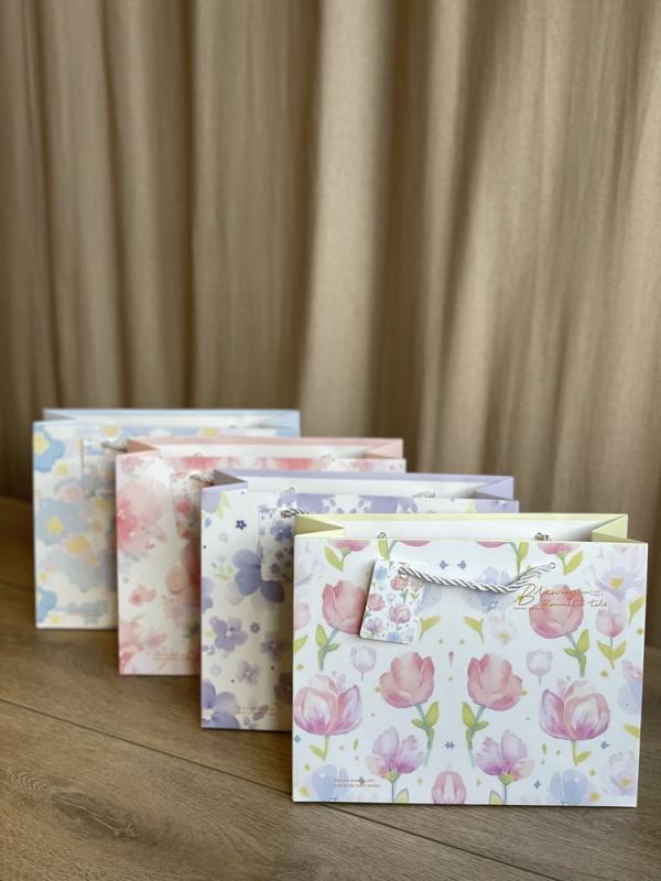 Описание Пакет подарочный Цветы весенние M 19,5x9,5x24,5cm