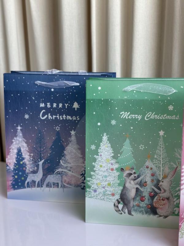 Описание Пакет подарочный Зимний лес M 32x9,8х26,8cм