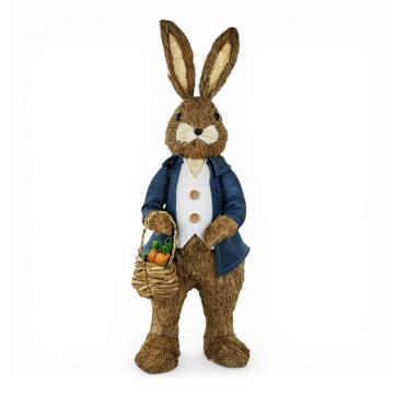 Описание Декоративная пасхальная фигурка Зайка в синем костюме 77см