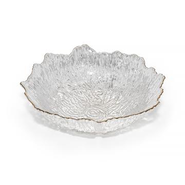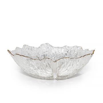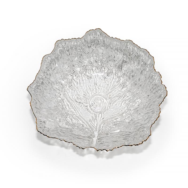 Стеклянная пиала «Лист» — утонченная стеклянная посуда, в которой природная форма сочетается с элегантной подачей. Изящный силуэт листа, рельефная поверхность и прозрачное стекло создают легкий, воздушный образ, а золотая окантовка красиво подчеркивает контур и делает пиалу из стекла особенно выразительной в сервировке.