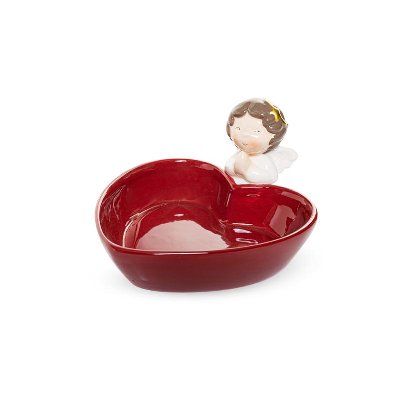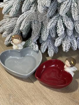 Описание Пиала Сердце с ангелом красная 16,9х14,6см