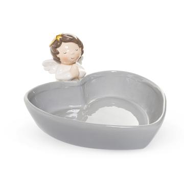 Описание Пиала Сердце с ангелом серая 20,6х18,4см