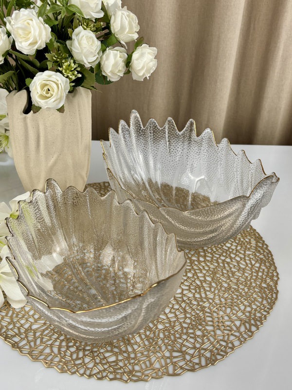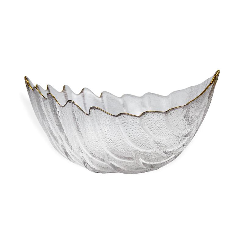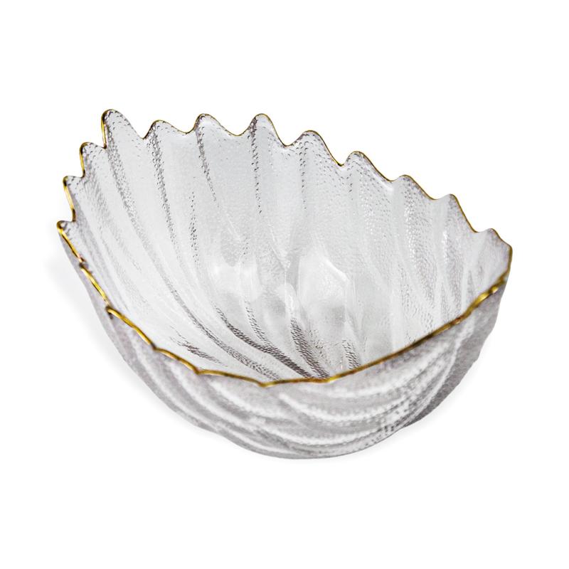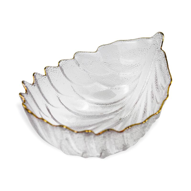 Пиала стеклянная «Лист» — это утонченное сочетание природы и элегантности. Ее форма, повторяющая изгибы листа с рельефной текстурой и изящной золотистой окантовкой, делает каждую сервировку особенной.