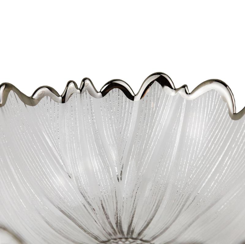 Стеклянное блюдо "Silver Orchid" – это воплощение элегантности и утончённости. Изысканный дизайн блюда в форме лепестков орхидеи с серебристой окантовкой придаёт сервировке особое благородство и сияние.