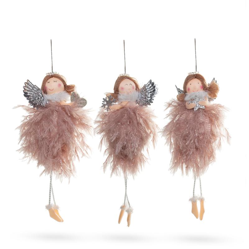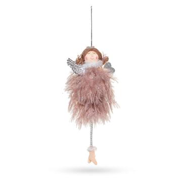 Описание Подвеска ангел в платье розовые перья 7х20см