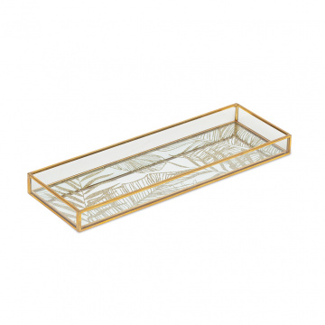 Фактурные элементы из стекла дополняют красоту и стиль интерьера. Декоративный поднос – прекрасное украшение для атмосферного дома. Зеркальная подставка с золотым узором доводит до совершенства праздничное украшение комнаты. Декоративный поднос сделает уникальным простой журнальный столик или комод. Удобно скомпоновать свечи, вазы и декор в одно целое, чтобы создать интересную деталь на видном месте. Стильный элемент декора для новогоднего или свадебного стола. Подносы представлены в двух размерах: S и M. Коллекция декора из стекла и латуни производит впечатление престижных изделий. Металл обладает прочными и антикоррозийными свойствами. Разновидность шкатулок, подсвечников, подносов и фото рамок в едином стиле создают великолепные возможности в интерьере. Переключите внимание на характер вашего дома. Освежите интерьер не банальными предметами декора. Зеркальный поднос – стильный подарок, который улучшит настроение мамы, жены, подруги.