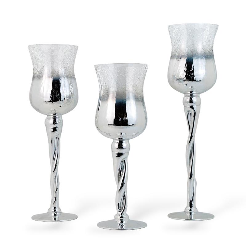 Подсвечник Ice Shards на крученой ножке серебряный М 40 см