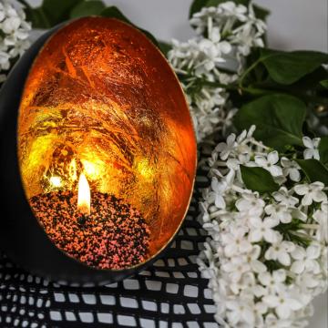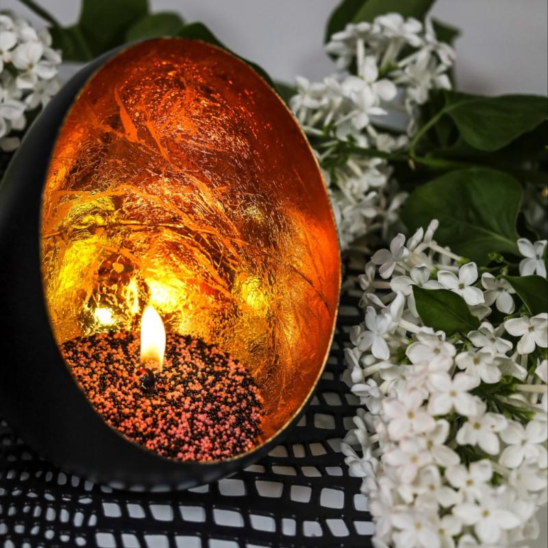 Оригинальный алюминиевый подсвечник Alien Sphere — это яркий акцент в интерьере, сочетающий в себе современный дизайн и утончённую игру света. Выполненный из прочного металла, подсвечник имеет эффектное матовое чёрное покрытие снаружи и сияющее золотое напыление внутри, создающее тёплое свечение при зажжённой свече.
