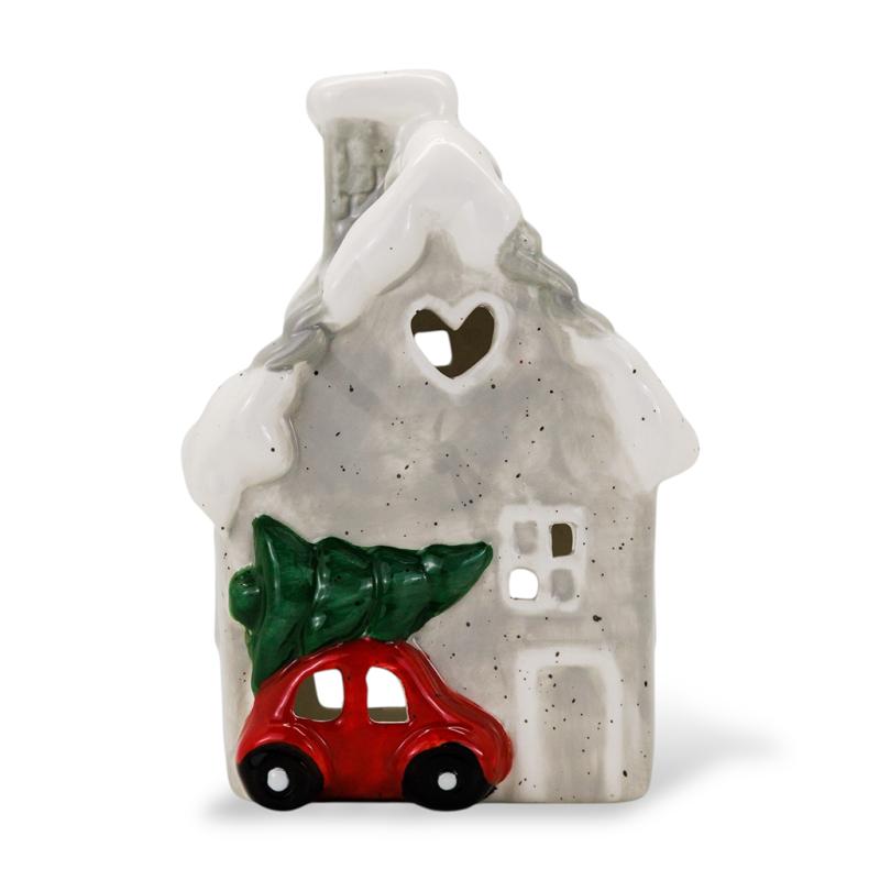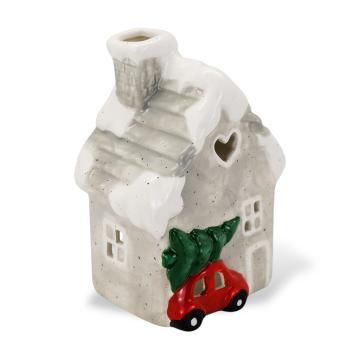 Описание Подсвечник декоративный керамика Домик с машинкой серый 16,4х9,3х12см