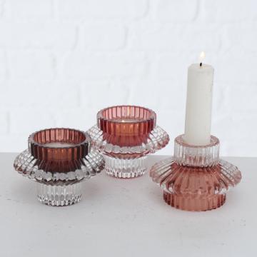 Описание Подсвечник двухсторонний стекло 3 цвета р.6см