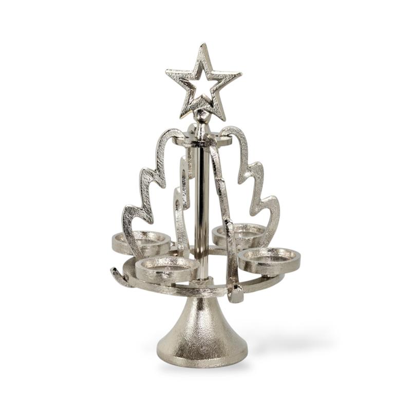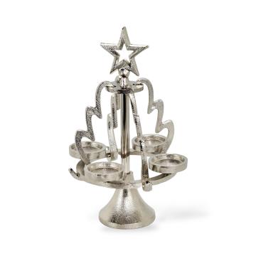 Описание Подсвечник алюминиевый на 4 свечи Елка серебро 28 см