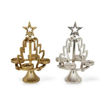 Подсвечник алюминиевый на 4 свечи Елка золото 28 см