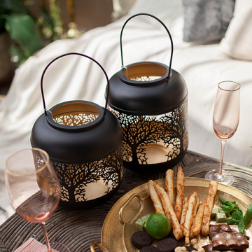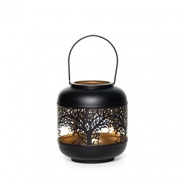 Описание Подсвечник-фонарь черный с золотом 19х19х20.5