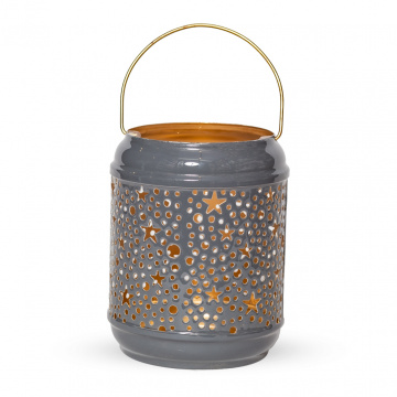 Описание Подсвечник-фонарь металл серый эмаль 13см