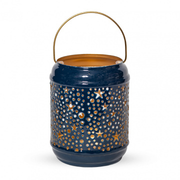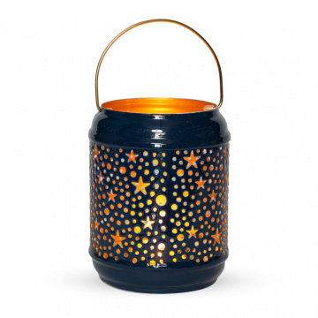В зимние сумерки есть желание побыть в тишине при свечах. В подсвечнике- фонаре живое пламя согревает уютом домашнего очага. Бархатными переливами радует темно-синий цвет. Подсвечник играет роль праздничного декора в помещении и открытом пространстве. Мириады звезд на фонарике отбрасывают загадочные тени. Длительно горящая свеча не оставляет следов воска или копоти. С фонариком приятно выйти на балкон или террасу, и оставить в подвешенном состоянии. Фонарик с металлической ручкой решает вопросы с безопасным освещением праздничного мероприятия. Смотрится элегантно на столе среди ваз, стеклянной посуды, сверкающих новогодних игрушек. Пользуется успехом сочетание подсвечников разнообразных цветов. Добавьте к фонарику модель серого, белого и красного цветов. Металлические подсвечники производства Индии выделяются достойным качеством. Изделия покрыты цветной эмалью, что придает поверхности ровный блеск. Полюбите зимние вечера при зажженных свечах. В атмосфере покоя и красоты обдумайте планы на предстоящий год. Под
