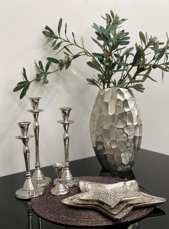 Серебряные подсвечники большего и меньшего размера группируют и размещают как центральный элемент сервировки. Они прекрасно дополняют романтический ужин, свадебное торжество и рождественские праздники.