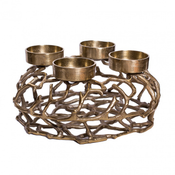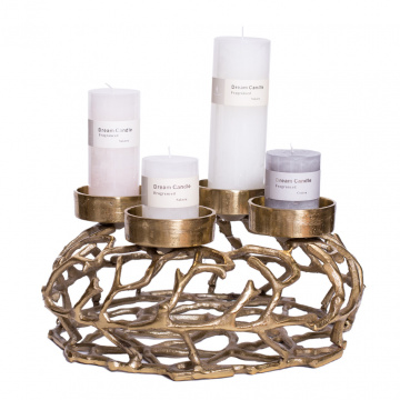 За пламенем свечи можно наблюдать часами, забыв о времени и наших беспокойных буднях. Круглый подсвечник из латуни создает загадочную игру приглушенного света четырех свечей.